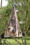 2012Doordat er in onze tuin verschillende vogels broeden heb ik een serie vogelhuisjes gemaakt voor een expositie in het Arboretum te Oudenbosch. Niet volgens de standaard voor nest kastjes, maar op een vrije manier, waarbij ik niet gekeken heb of er vogels in zouden gaan broeden. Meestal staan ze op ijzeren staven met op de grond keramiek voetjes, dit om de vogels te beschermen tegen katten etc.